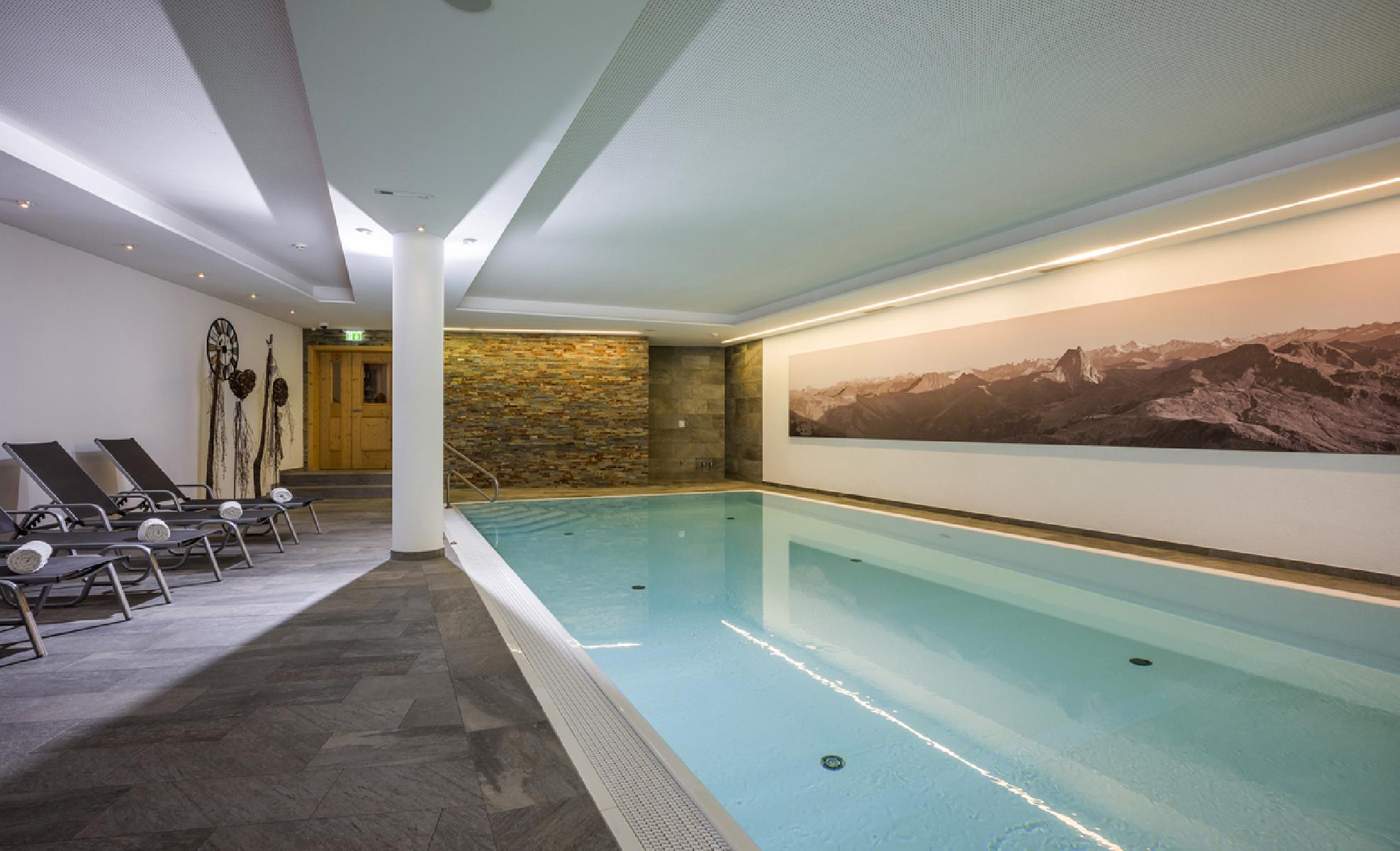 Het vriendelijke hotel biedt je naast in totaal 44 wooneenheden een uitnodigende ontvangsthal met zitgelegenheid, een receptie, een binnenzwembad, een terras en een laadstation voor elektrische auto’s evenals een mooie wellnessruimte (ca. 280 m²) met onder andere sauna, stoombad, belevenisdouche en infraroodcabine.