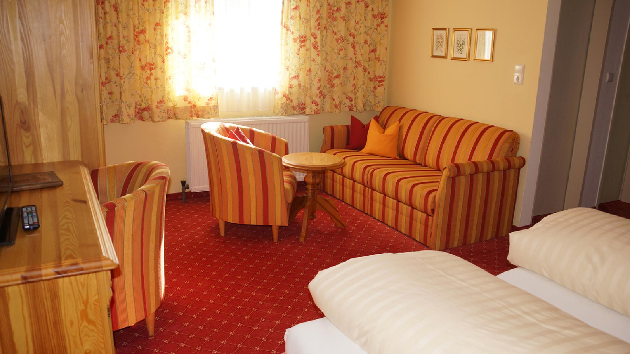 De comfortabele kamers beschikken over satelliet-tv, een zitgelegenheid, douche of bad, apart toilet, haardroger, cosmeticaspiegel en deels een balkon. De kamers bestaan uit een slaapruimte met een tweepersoonsbed en een tweepersoonsslaapbank. De gemiddelde kamergrootte bedraagt ca. 50 m².