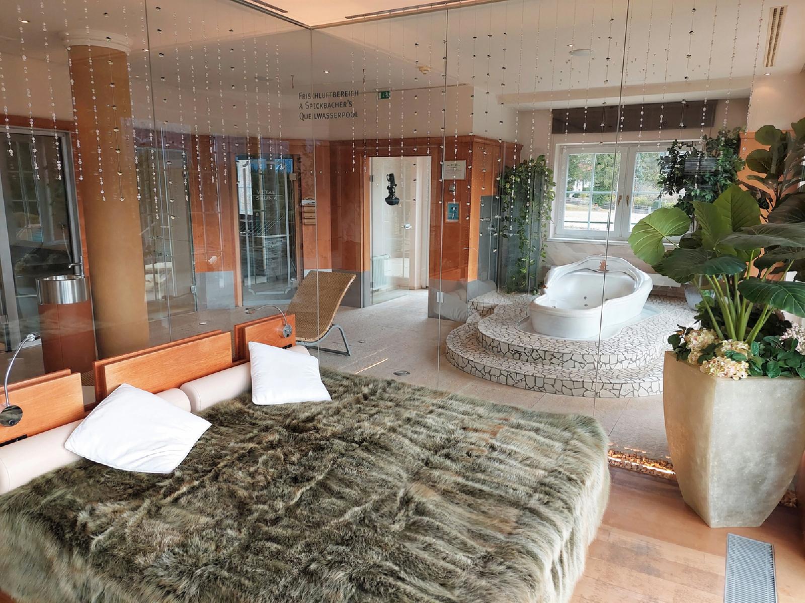 - Dagelijks gebruik van het wellnessgedeelte Wellness-Oase in het hoofdgebouw Alpenhotel Speckbacher Hof van 1:00 p.m. tot 8:00 p.m. (vrijdag tot zondag al geopend vanaf 11:00 a.m.) met de volgende faciliteiten: