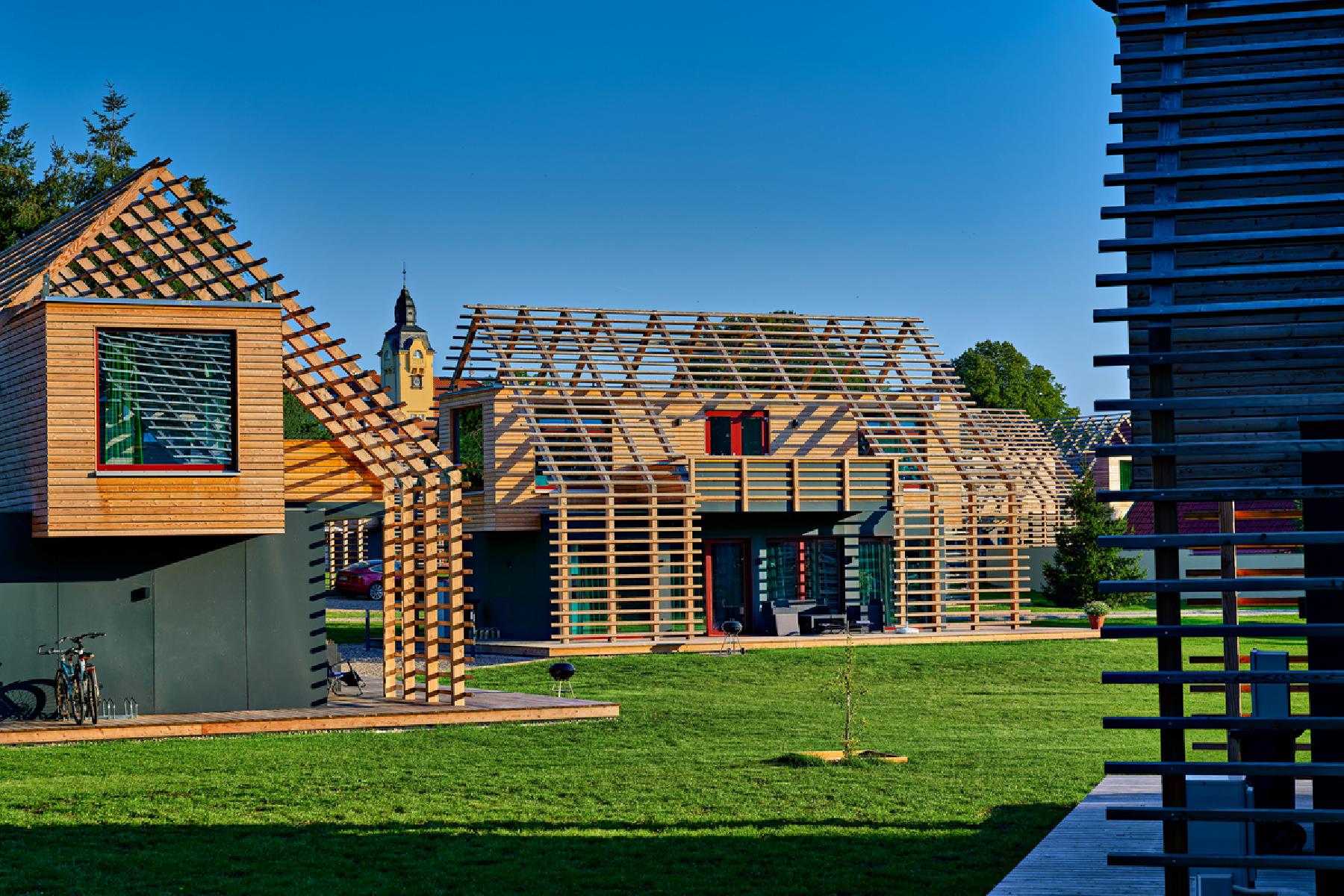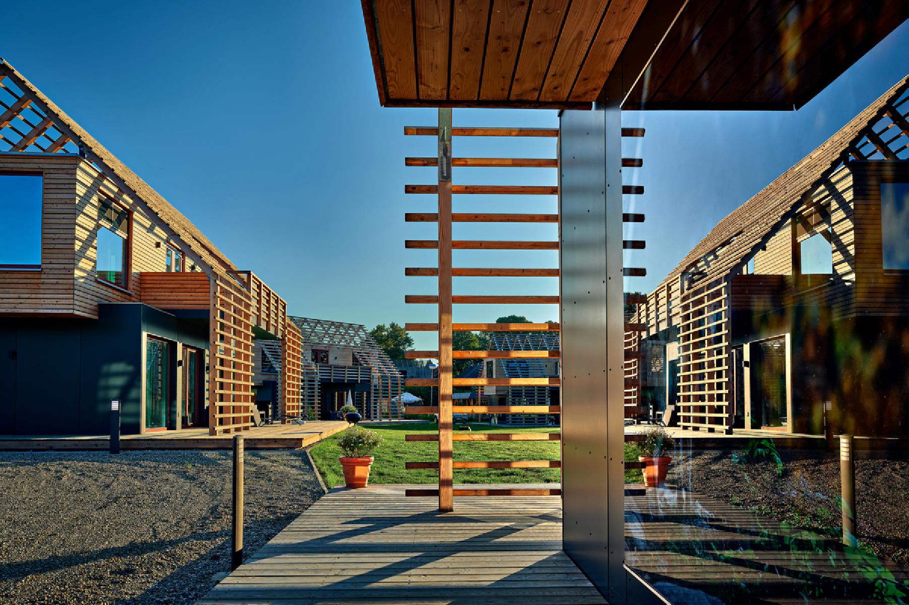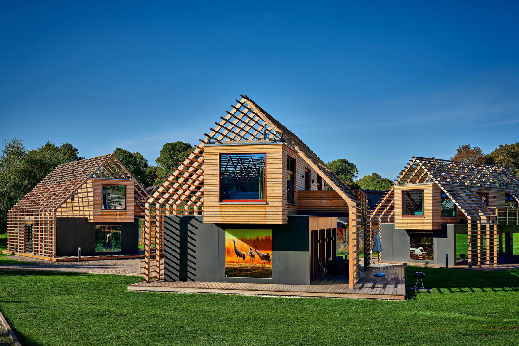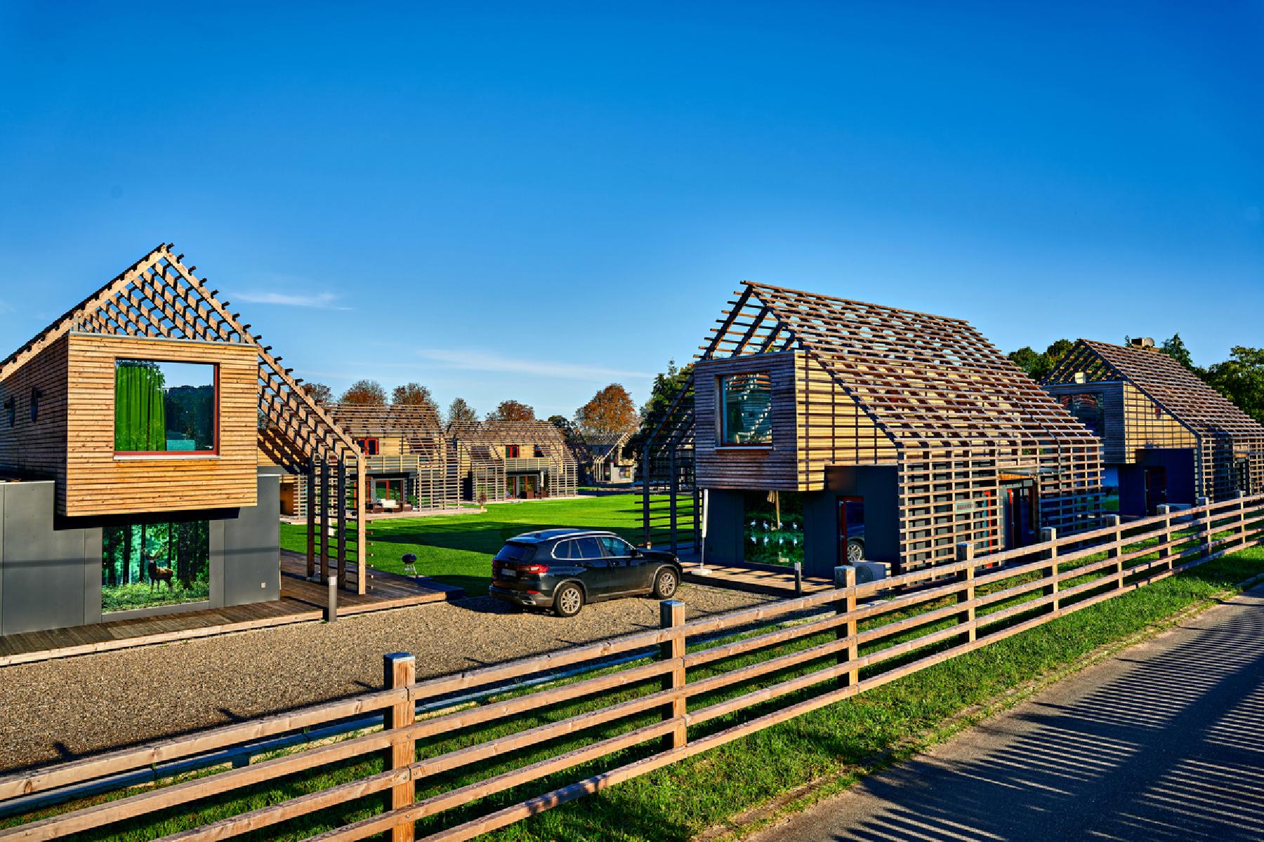 De chalets hebben een oppervlakte van ca. 80 m² en bestaan uit een woonkamer en twee aparte slaapkamers, elk met een tweepersoonsbed. De keuken is volledig uitgerust met koelkast, koffiezetapparaat, waterkoker, broodrooster, oven, kookplaat, vaatwasser en alle benodigde keukengerei. De badkamer beschikt over een bad of douche met toilet en een haardroger. Daarnaast is er een extra toilet aanwezig. Tot de uitrusting behoren een flatscreen-tv met satelliettelevisie, een bank, een strijkijzer en een wasmachine. Buiten staan tuinmeubelen, een eetgedeelte in de openlucht, een barbecue en een balkon ter beschikking.