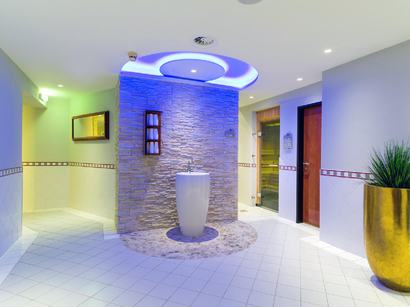 - Gebruik van de ca. 300 m² grote wellnessruimte van 3:00 p.m. tot 9:00 p.m. met de volgende faciliteiten: