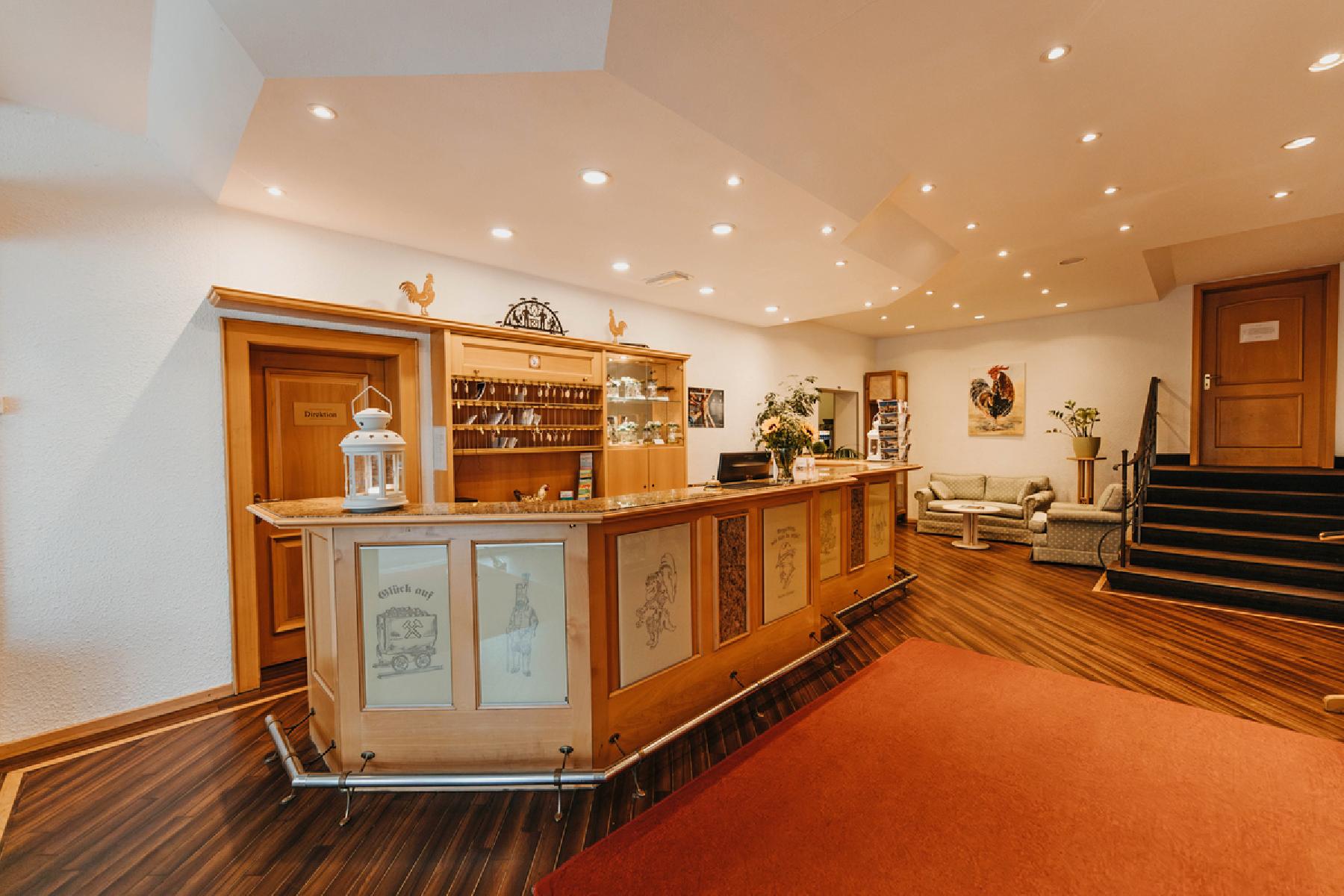 Het Sonnenhotel Hoher Hahn ligt op ongeveer 4,5 km van het centrum. Cafés en restaurants evenals winkelmogelijkheden bereik je na ca. 5 km. Wij raden je een uitstapje aan naar een van de vele hoogtepunten in de omgeving, zoals naar de bezienswaardigheid Schloss Schwarzenberg (ca. 4,5 km), naar de Badegärten Eibenstock (ca. 19 km) en naar het recreatiepark Wurzelrudis Erlebniswelt (ca. 18 km). De Bergbahn Bermsgrün Ski Lift ligt op ongeveer 500 m van het hotel. Direct bij het hotel bevinden zich twee langlaufloipes.